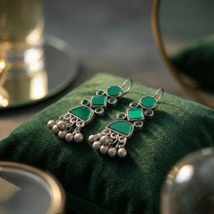 New Green Mirror Afghani Earrings