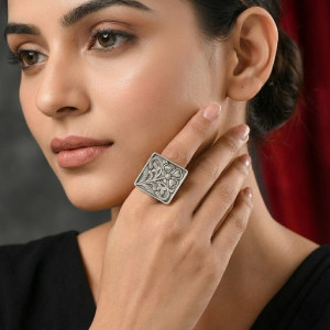 New Beautiful Flower Pattern Silver Mirror Ring by Glam Junction