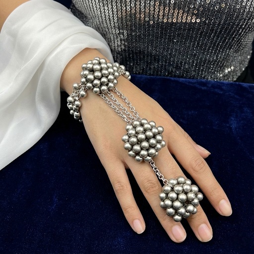 New Beautiful Silver Beaded Potli Hath Phool