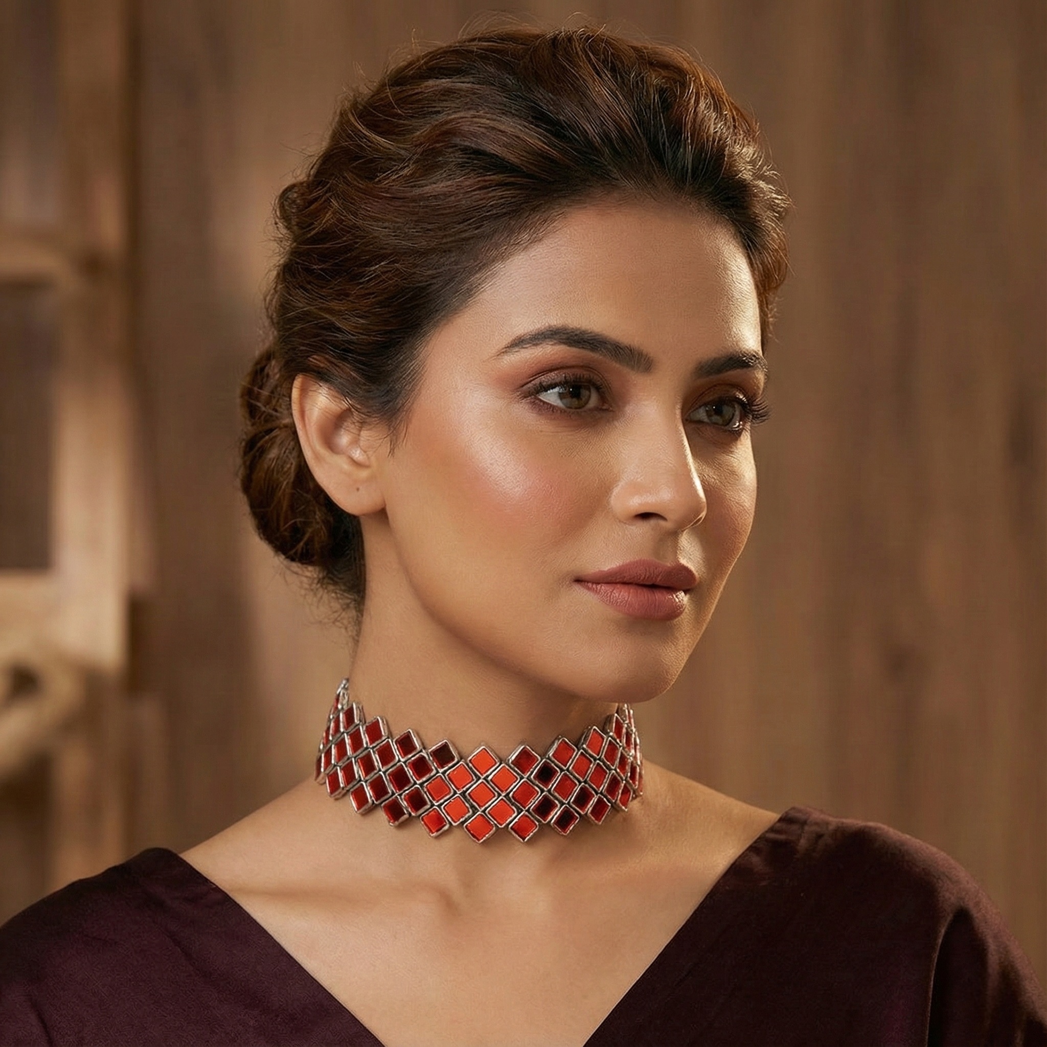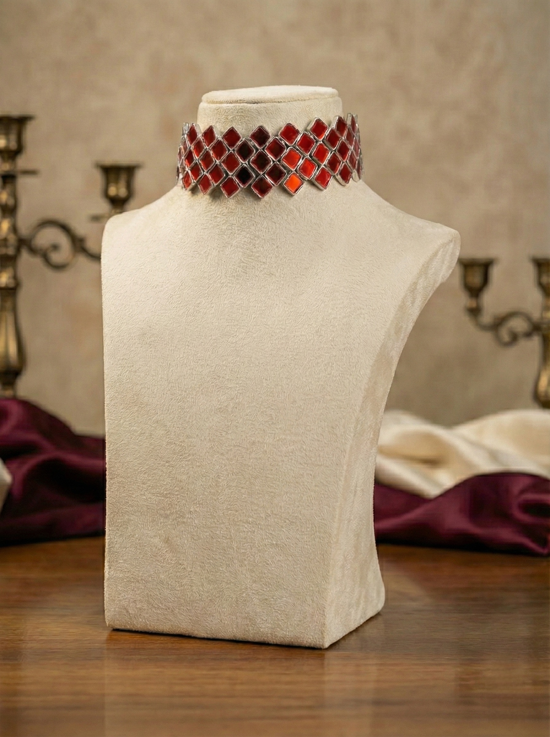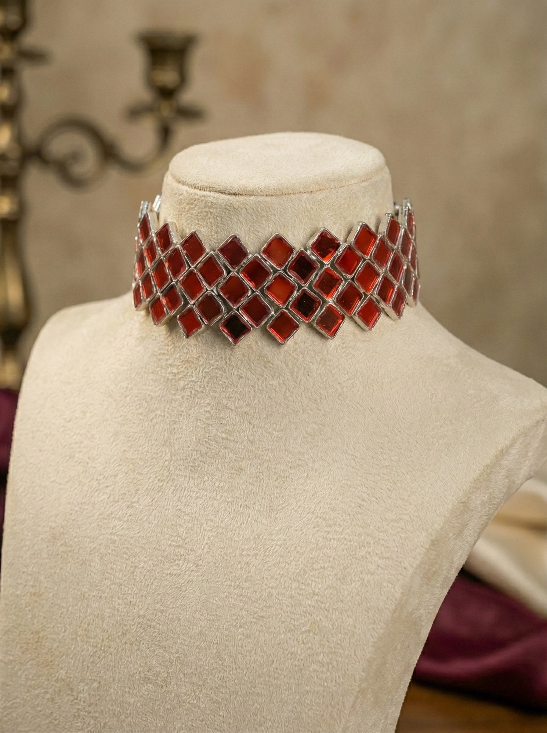 New Beautiful Red Mirror Elegant Choker Set