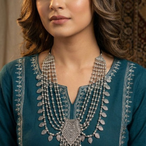 This jewellery consists of a New Exclusive Statement Silver Mirror Afghani Pattern Necklace Set