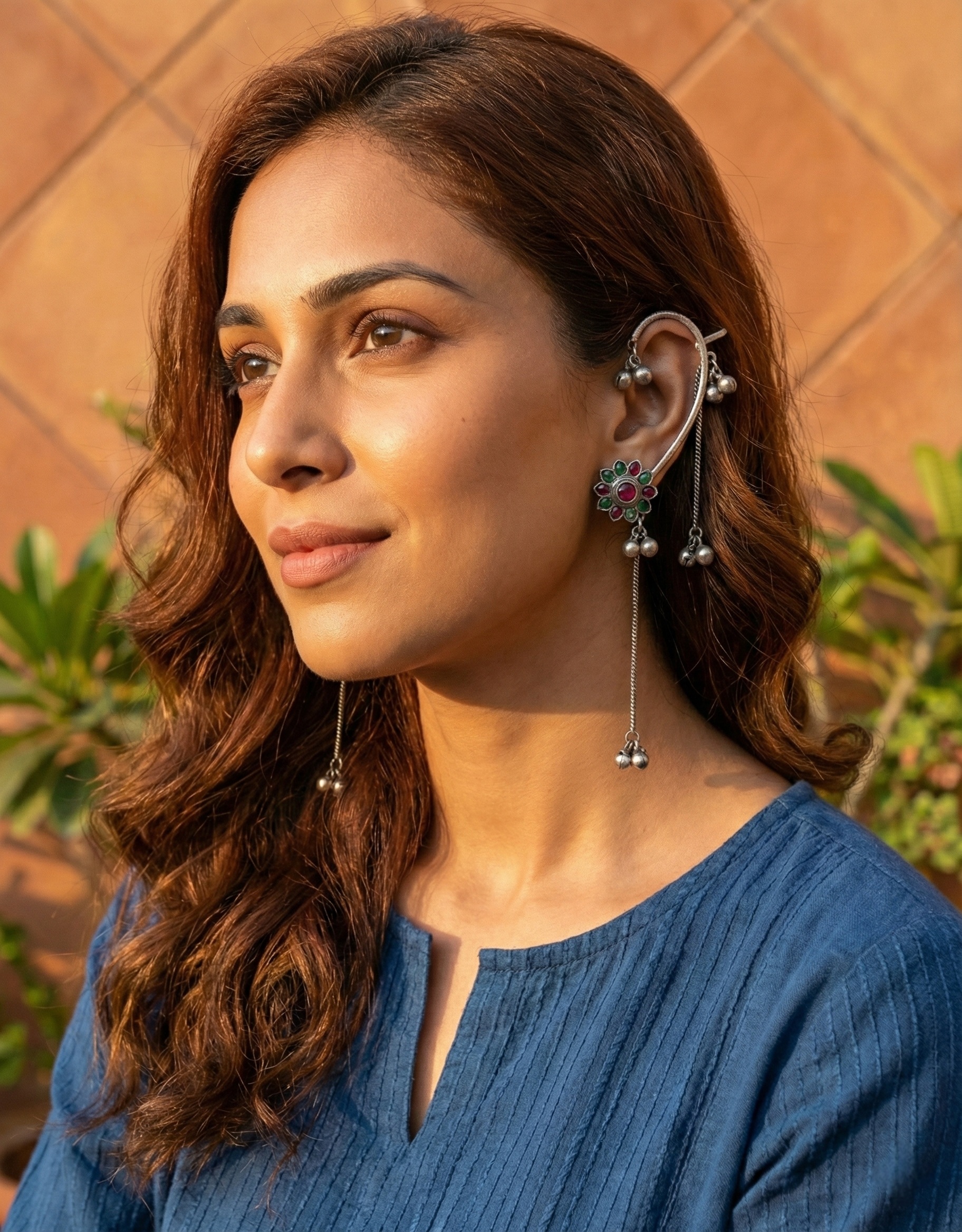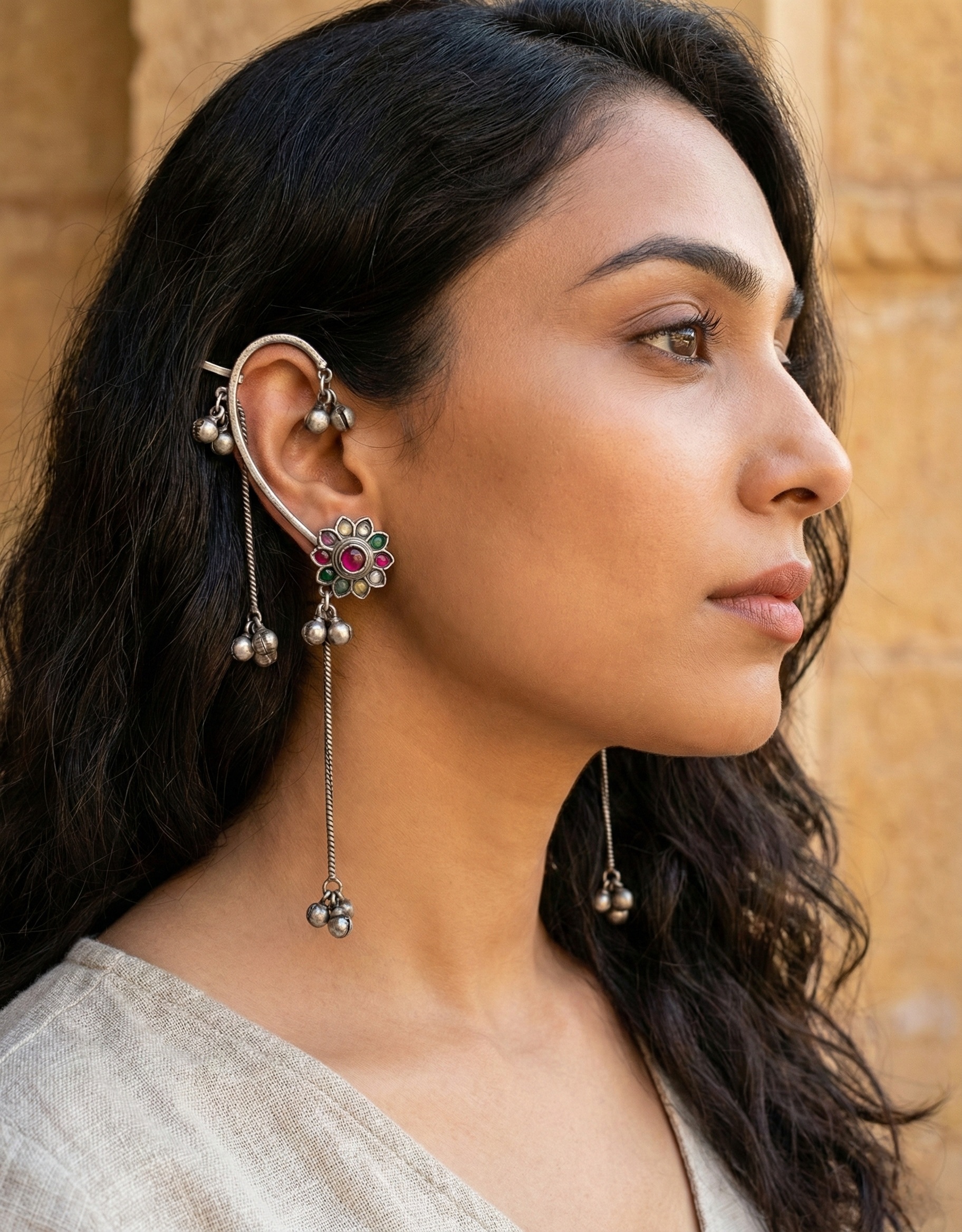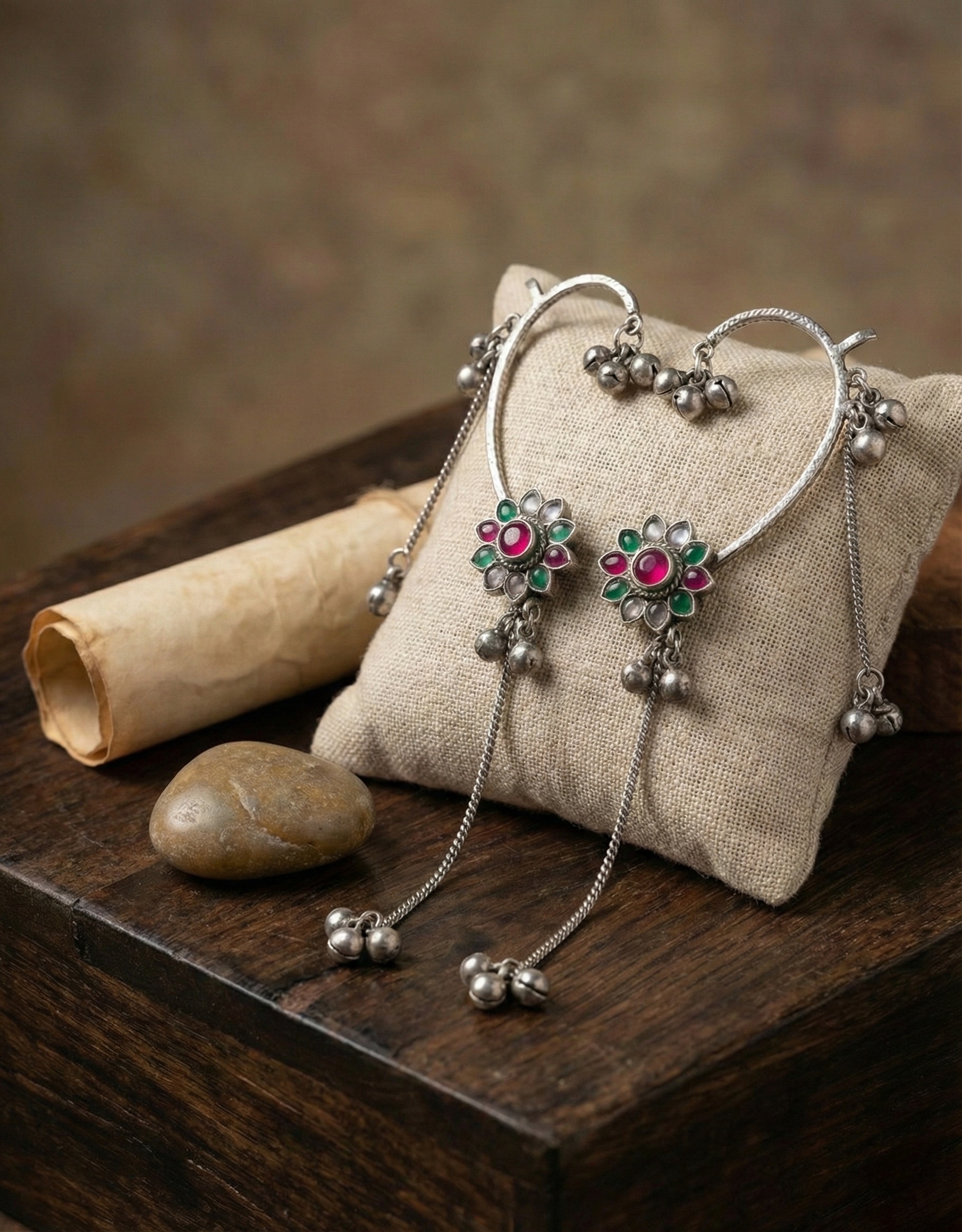 New Silver Mirror Ethnic Indian Classic Jhumka