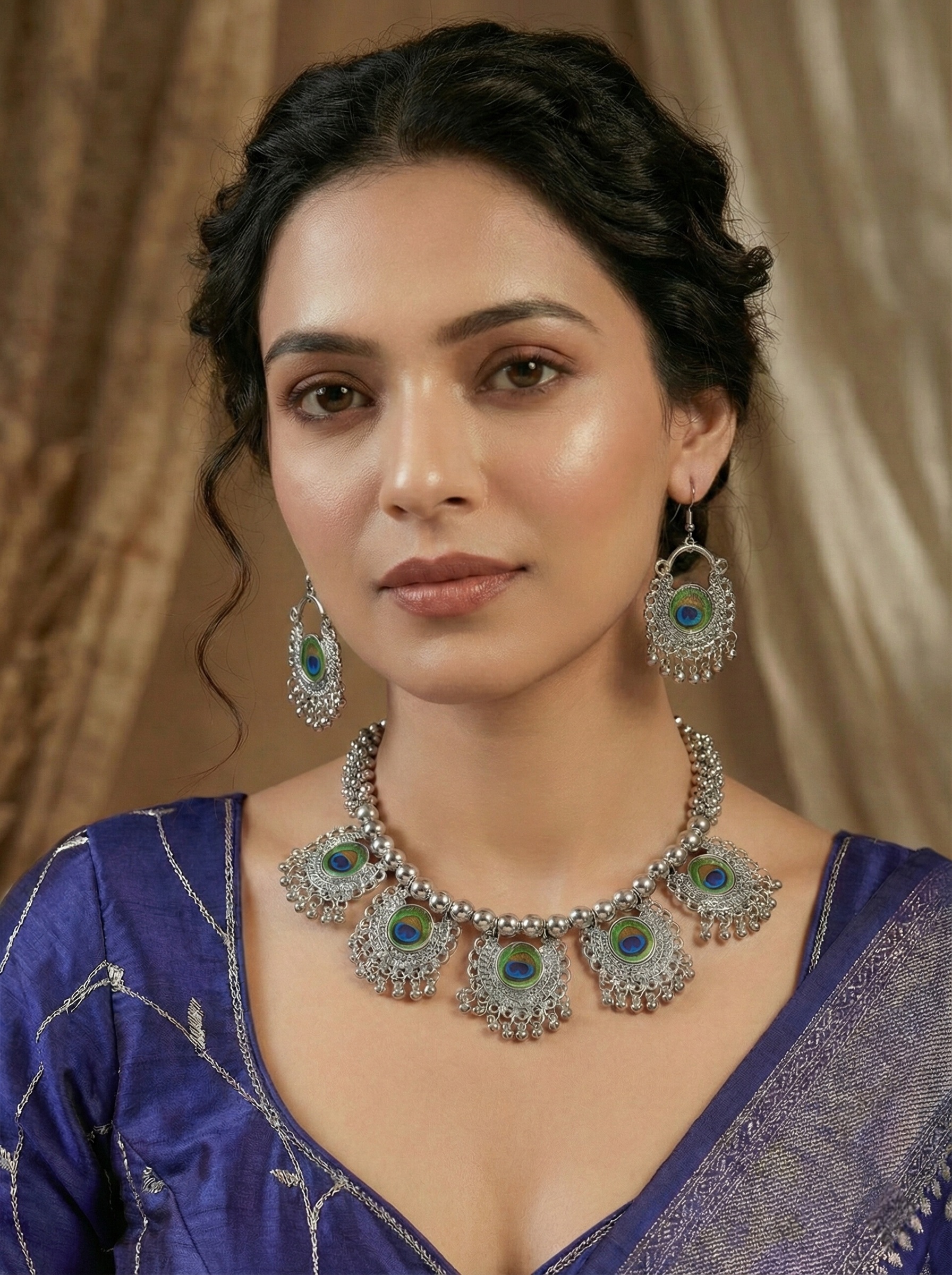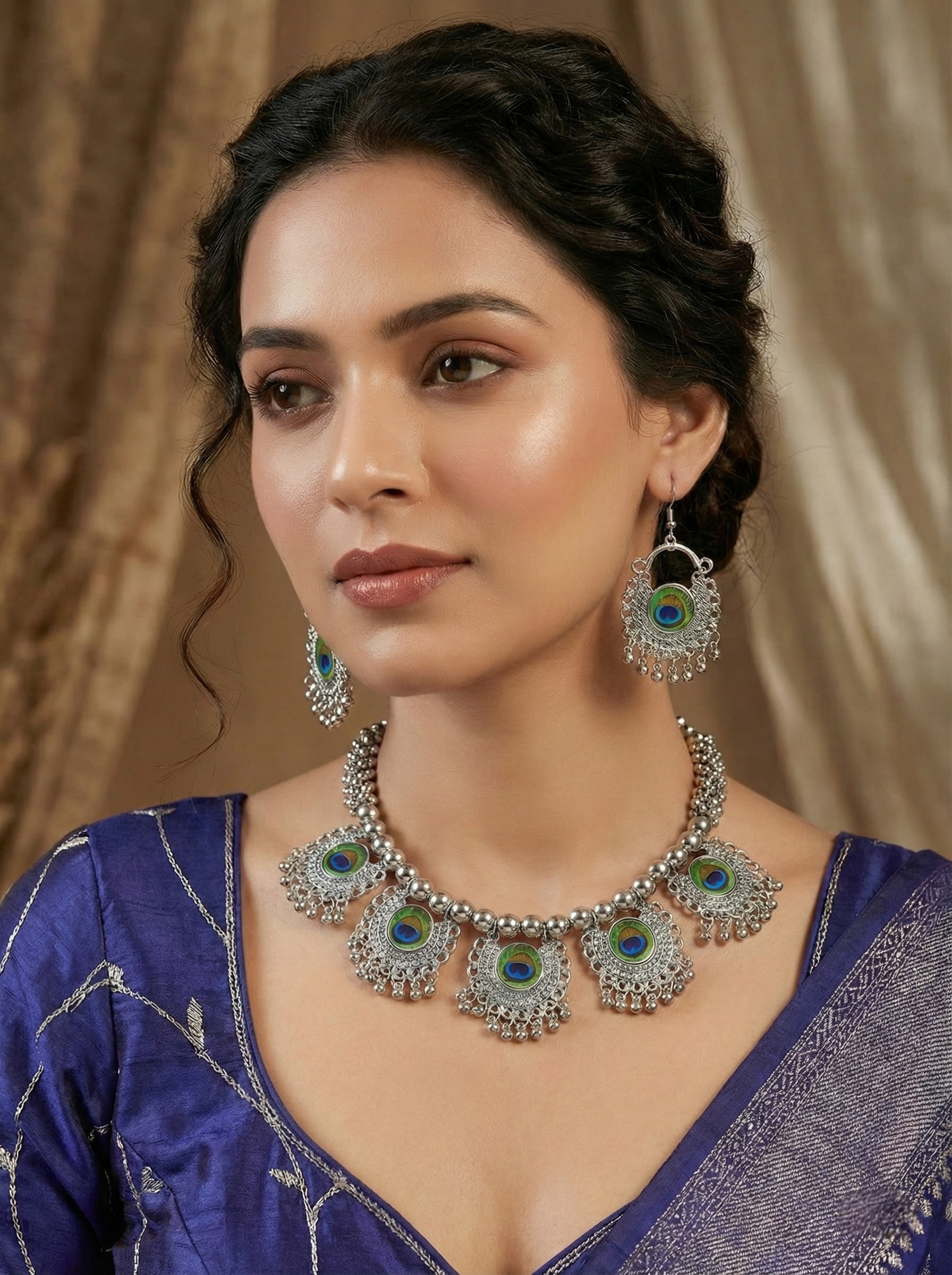 New Mayuri Silver Oxidised Hasuli Choker Set