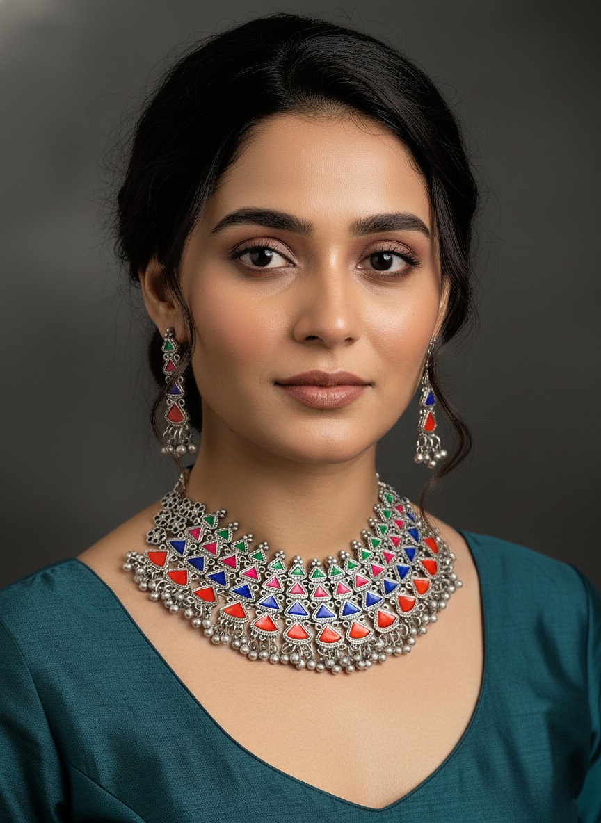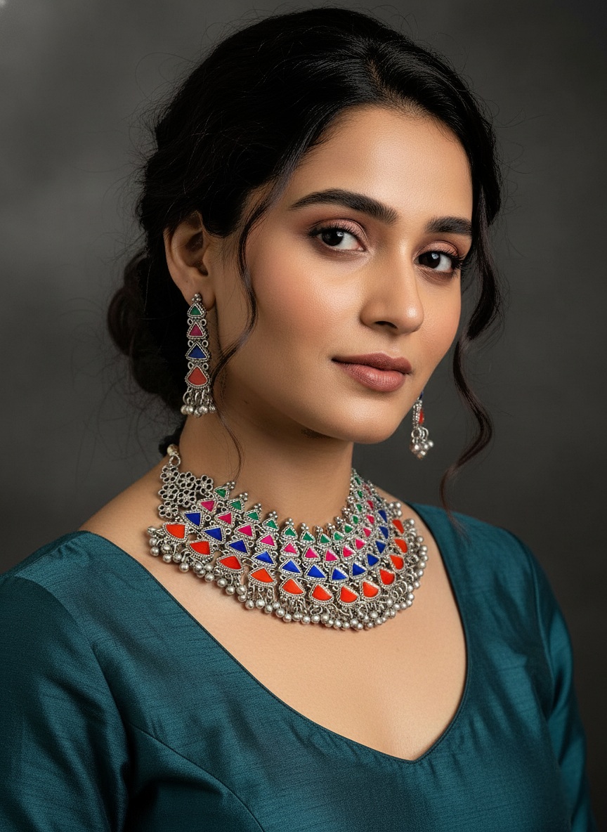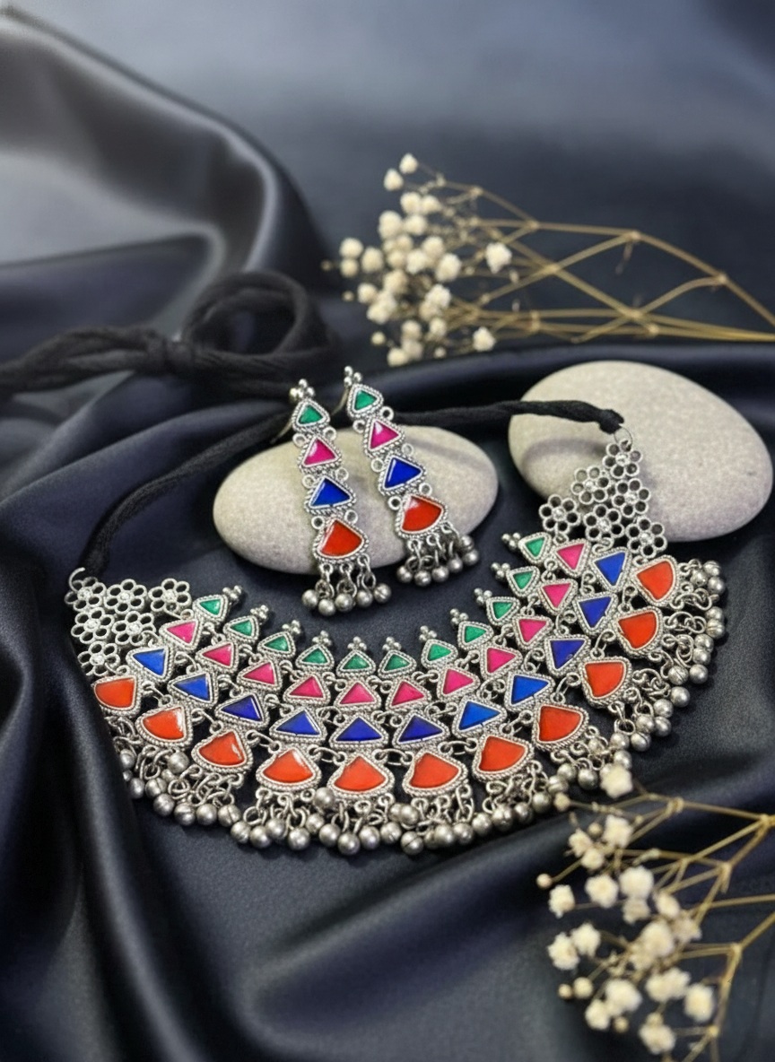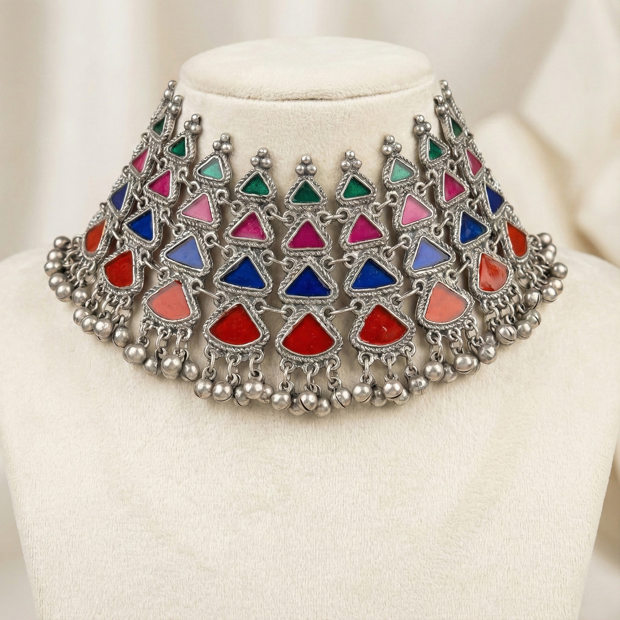 New Multi Meena Ethnic Ghunghroo Choker Set