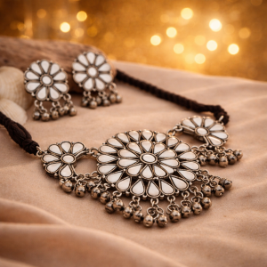 This jewellery consists of a New Premium Red Mirror Stone Work Afghani Choker Set