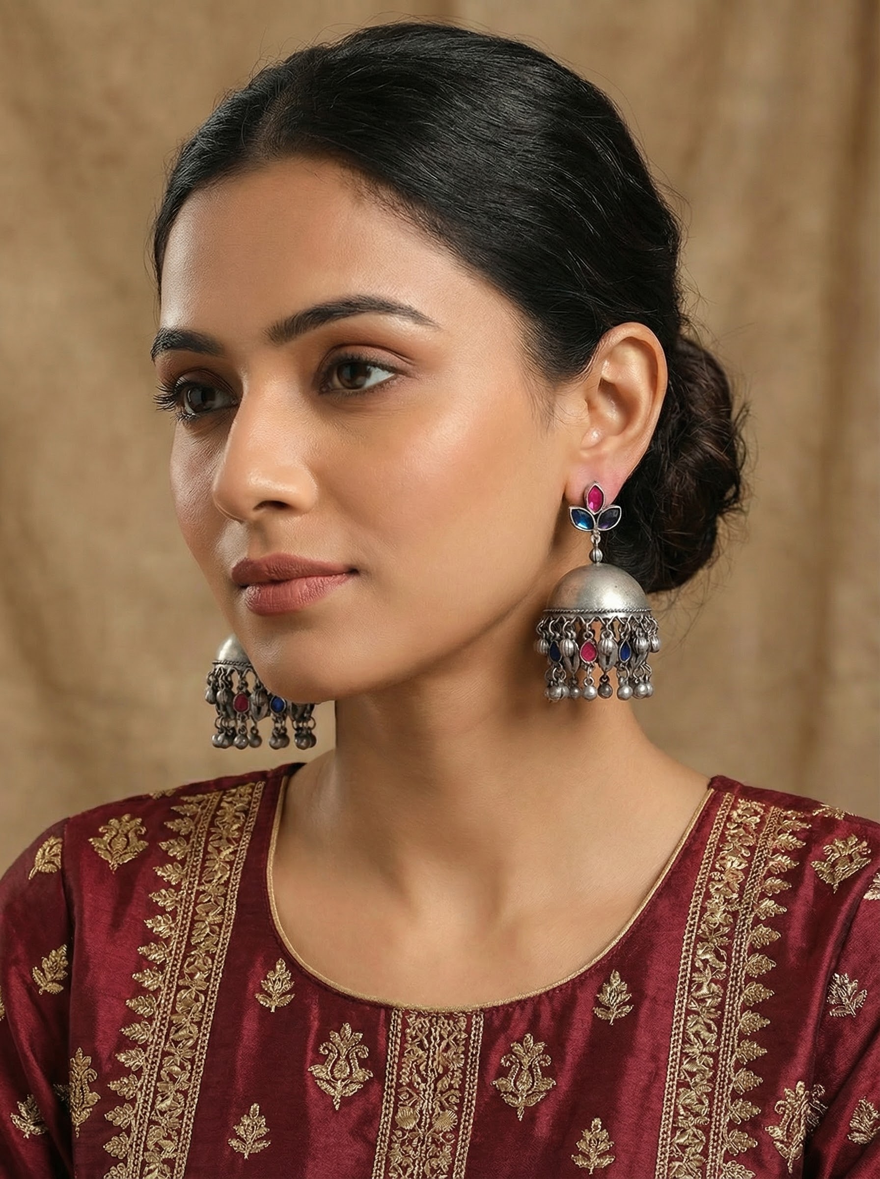 New Silver Look Alike Ethnic Indian Jhumka