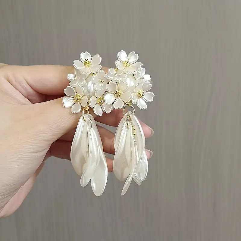 New White Flower Korean Style Earrings